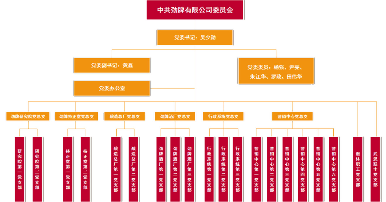在各級黨組織的高度重視和親切的關(guān)懷下,勁牌有限公司的基層黨組織隨著企業(yè)的穩(wěn)健發(fā)展而不斷壯大,1996年升格為黨委,2013年成立紀委;同時建立健全了工會、共青團、婦聯(lián)組織,配備了專兼職人員,形成了黨建工作齊抓共管的工作格局。目前,公司黨委下轄6個黨總支,共設20個黨支部。